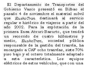 La primera línea Atxuri-Basurto entrará en servicio en 2002