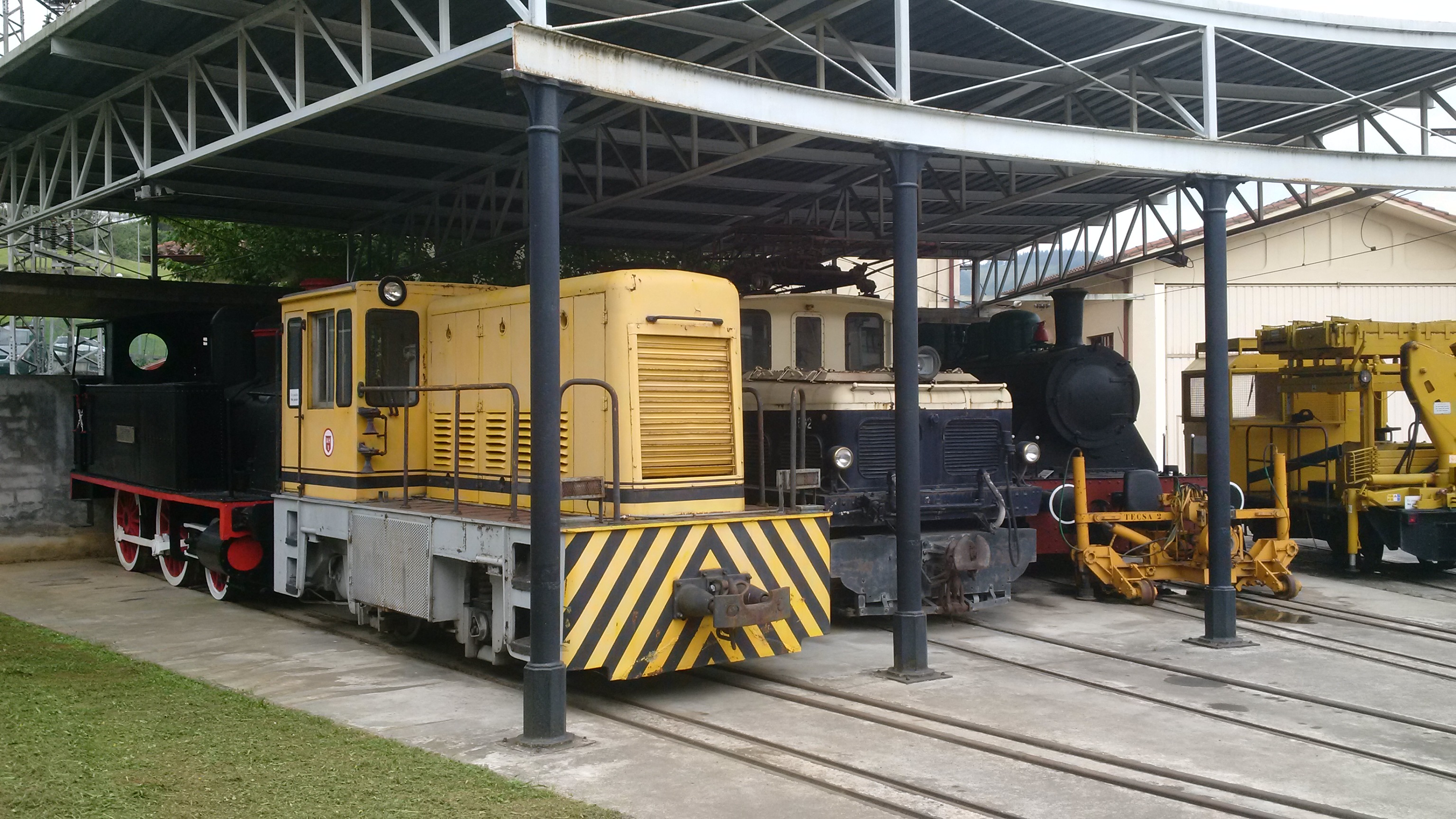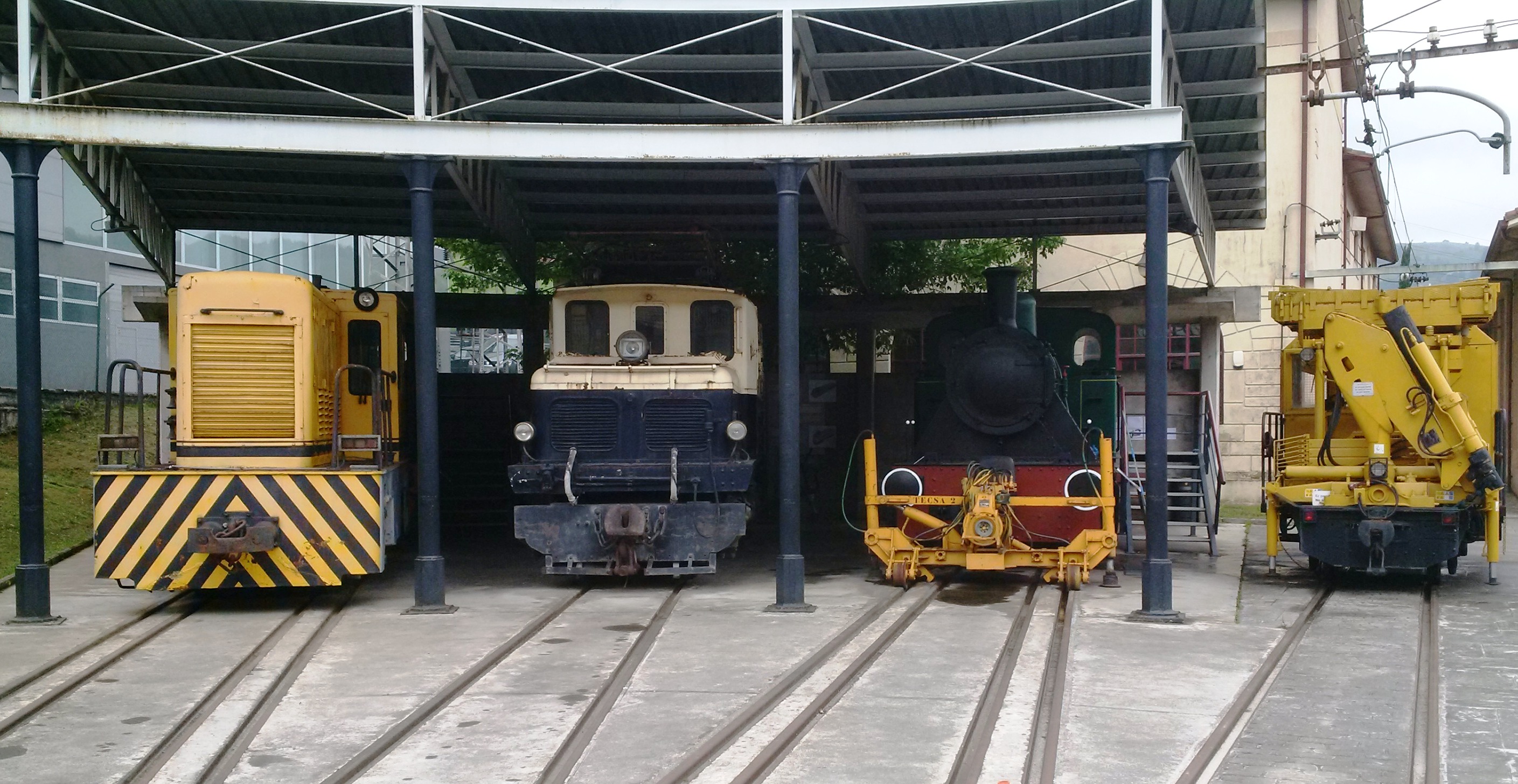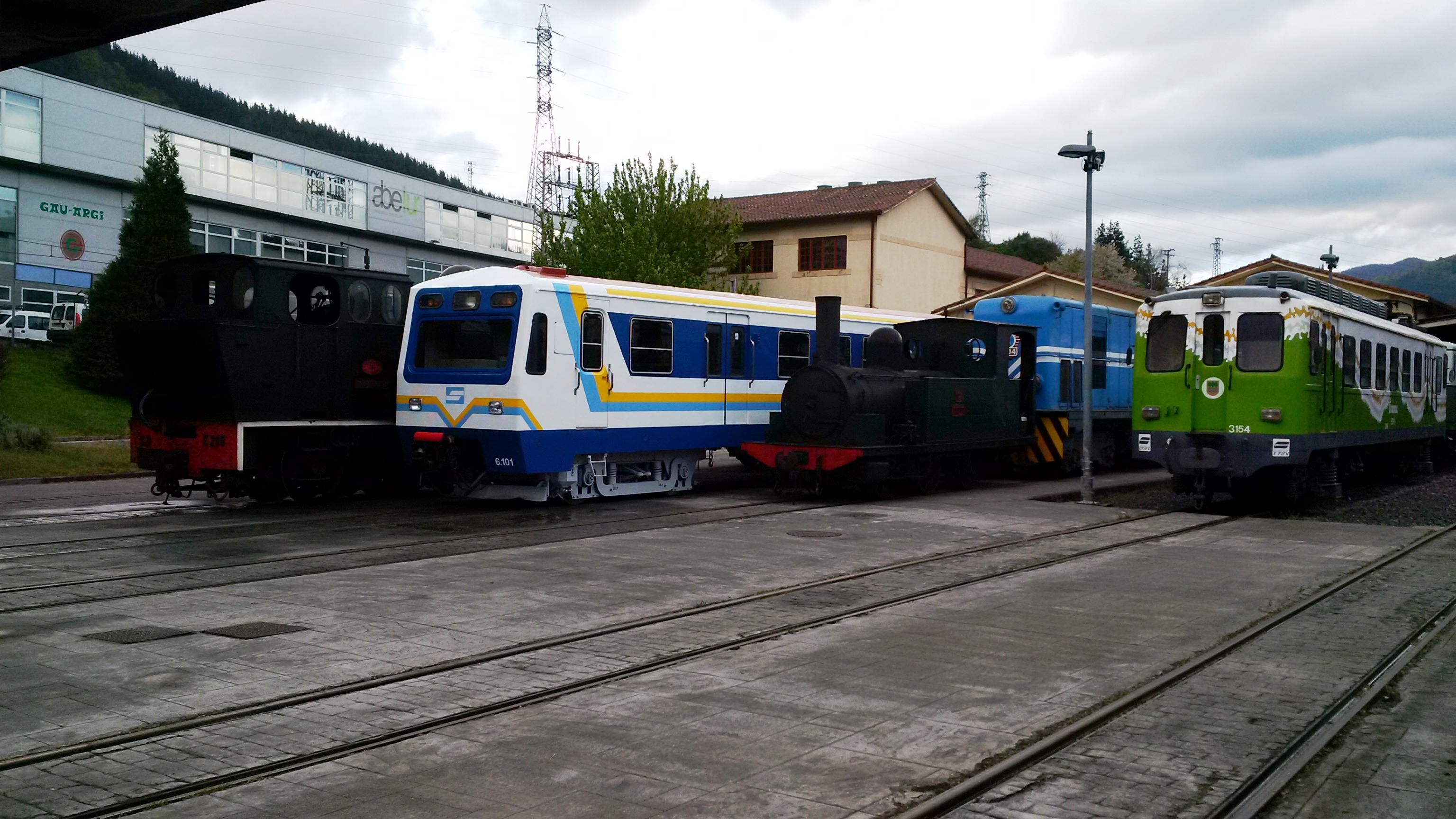 Tras una jornada de maniobras, la rotonda del Museo Vasco del Ferrocarril cobija una variada representación de las tres tracciones ferroviarias.