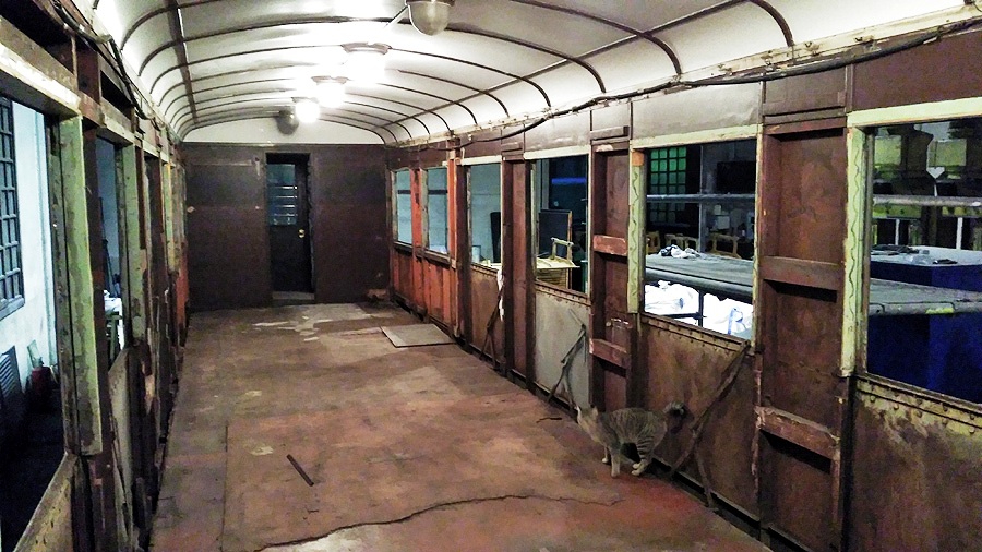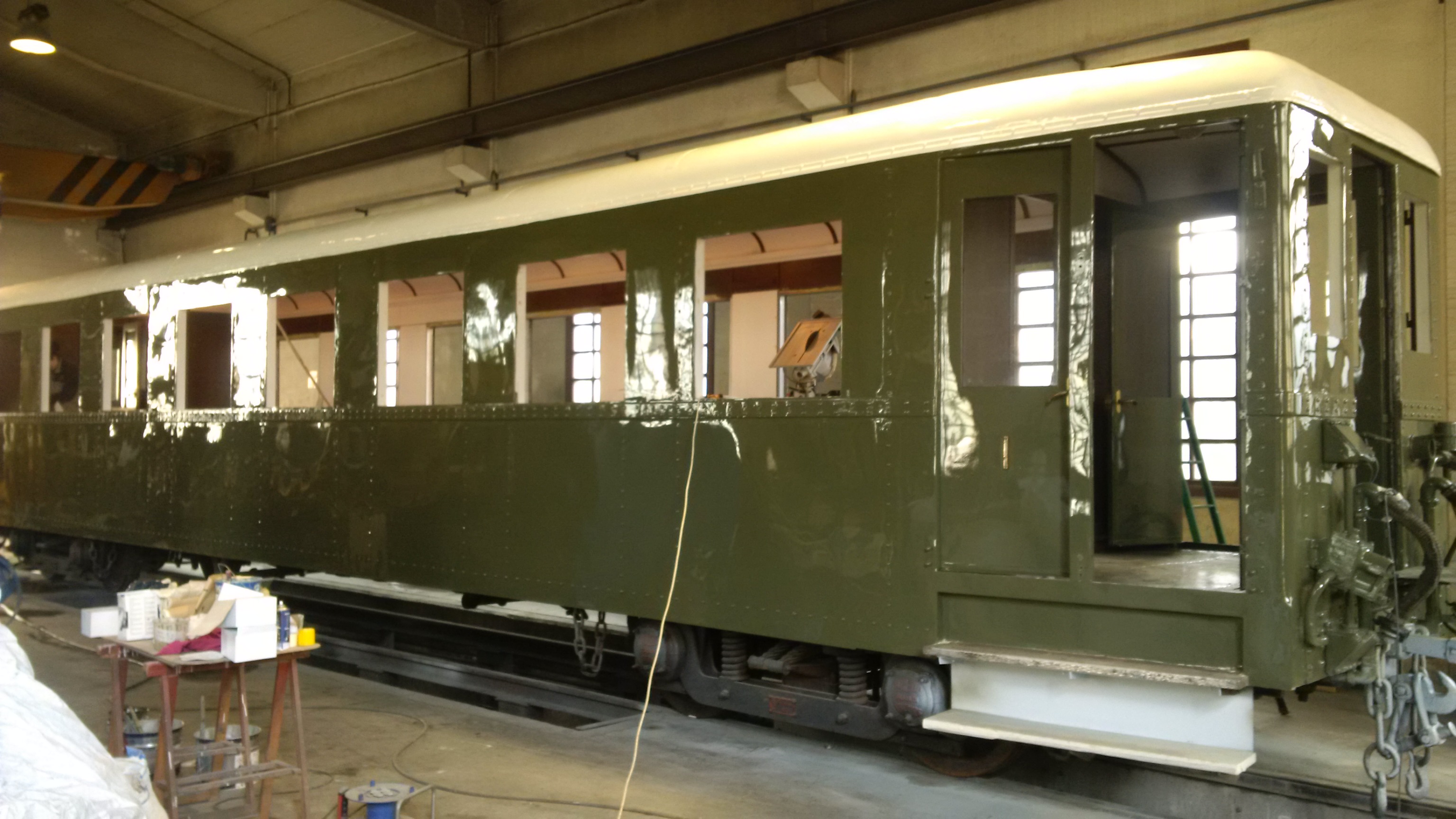 El Museo Vasco del Ferrocarril ya está preparando la próxima temporada de trenes de vapor, que comenzará en Semana Santa, el 24 de marzo. Para ello se han iniciado los trabajos de rehabilitación del coche de viajeros TC-52, restaurado hace ya 23 años en los talleres de CAF en Irún y que, tras años de intenso uso, necesitaba una profunda puesta a punto. En las fotografías, tomadas el 13 de febrero por Hodei Goldarazena, se aprecia el avance de los trabajos en el exterior e interior del vehículo.