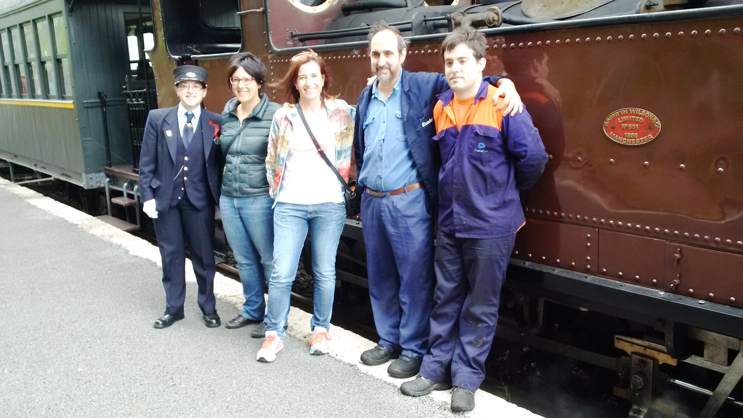 Hoy ha visitado el Museo Vasco del Ferrocarril un nutrido grupo de Derio (Bizkaia), incluida su alcaldesa, Esther Apraiz, que en la imagen posa junto al equipo del tren de vapor.