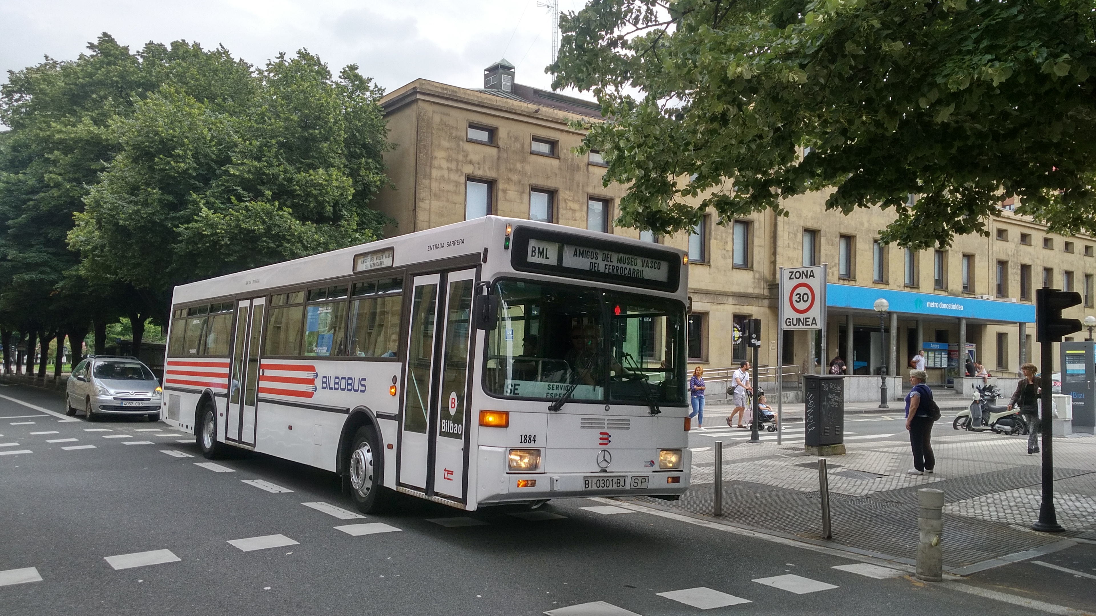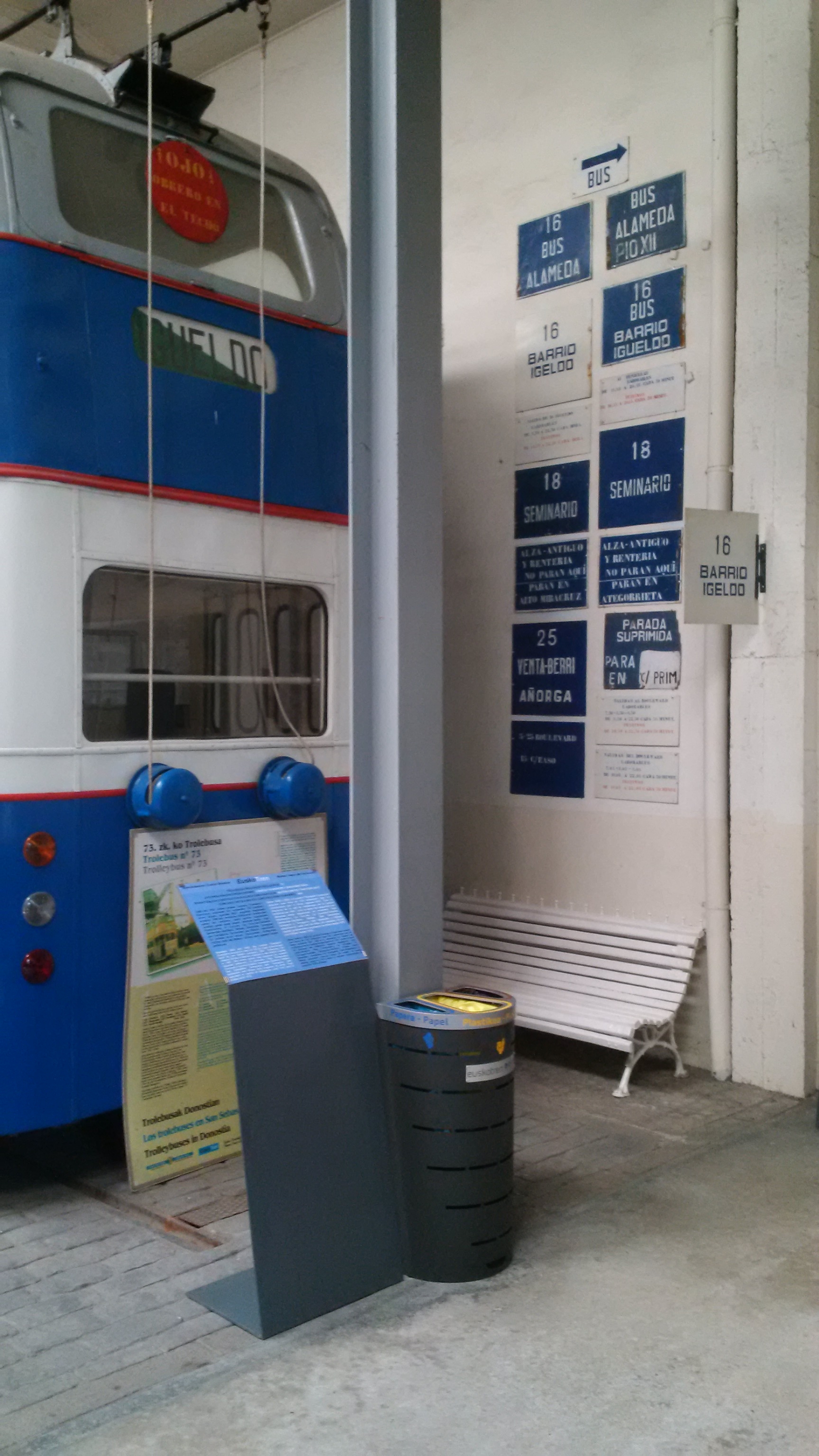 Hoy se han colocado, en el área de transporte urbano, algunos rótulos antiguos de las paradas de la Compañía del Tranvía de San Sebastián.