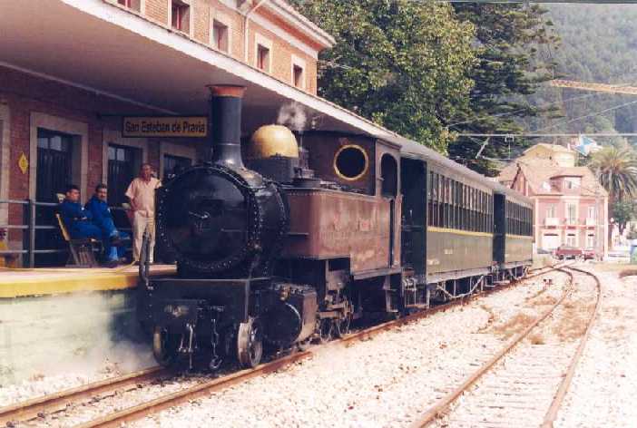 Como ya se anunciaba en el boletín número 18 de BML BERRIAK, el Tren de Vapor ha viajado a Asturias los días 2, 3 y 4 de Agosto, con motivo de la celebración del centenario del F.C. Vasco-Asturiano. He aquí una foto correspondiente a dicho evento, con el Tren de Vapor estacionado en la estación de San Esteban de Pravia.